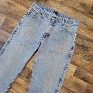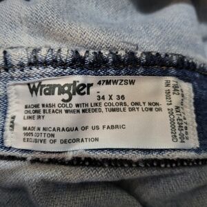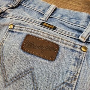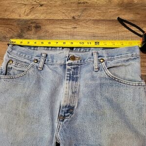 Wrangler Men's Western Light Wash Denim Jeans Size 34x36. Has some wear and stains. Measurements in photos