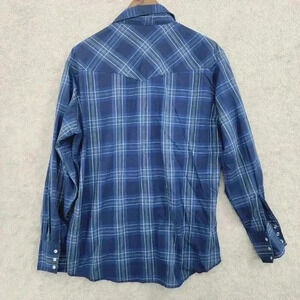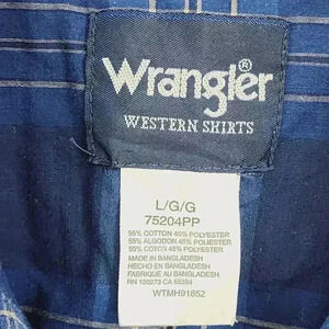 Wrangler Men's Western Plaid Button-Up Shirt Blue L Cotton & Polyester 13PT