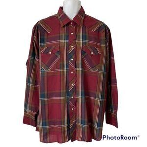 Wrangler Men's Western Shirt 2X Pearl Snap Plaid Maroon Cowboy Rodeo
