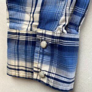 Wrangler Mens Western Shirt Large Blue Plaid With Pearl Snaps