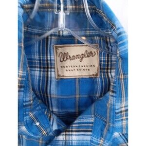 This Western-style shirt from Wrangler is perfect for casual occasions. With a plaid pattern in blue, black and red, it features short sleeves and a collared neckline with a button-down style. The shirt is made of denim fabric with accents of buttons and pockets, and comes in a regular fit for men's sizes. Ideal for anyone who loves vintage clothing, this Wrangler Wrancher shirt is a great addition to your wardrobe. The shirt is suitable for men's casual occasions, with a unique Western-themed style and a comfortable regular fit. The shirt is made of cotton fabric, with a snap closure and a variety of features such as pockets and short sleeves.