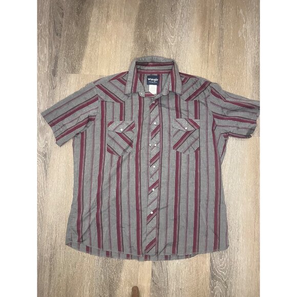 Wrangler Mens Western Short-Sleeve Shirt XL Red & Gray Striped 65% Cotton 35% Po