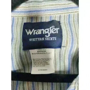 Wrangler Men's White Green & Blue Striped Long Sleeve Snap Button Shirt Size 2X