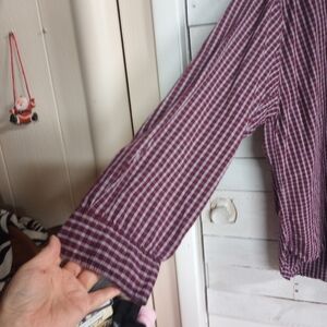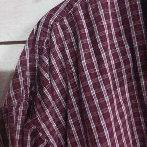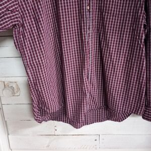 Wrangler Men's XL Cotton Long Sleeve Button Up Shirt Plaid Red Business Career Wear. Approximate measurements are laying flat armpit to armpit 28" and length from shoulder to hem 30". Condition is pre owned, used, good condition.