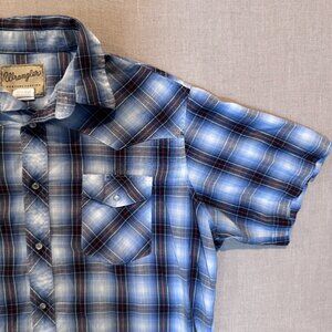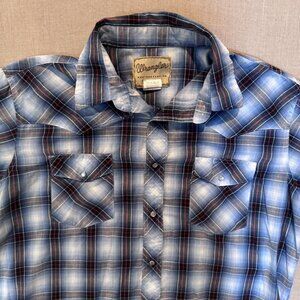 Wrangler Men’s XL Snap Button Western Shirt Blue Plaid Pearl Snap Cowboy