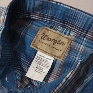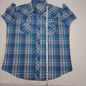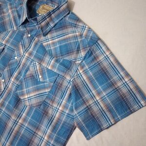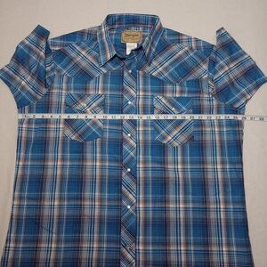 Wrangler Men's XL Western Shirt Blue Pearl Snap Short Sleeve Cotton Polyester