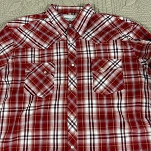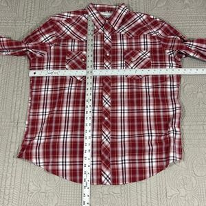 Wrangler Men's XL Wrancher Shirt Pearl Snap Red Plaid Cowboy Tiny Spot See Pics