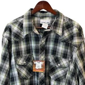 Wrangler Mens XXLT Green Plaid Flannel Long Sleeve Shirt Pearl Snaps NWT