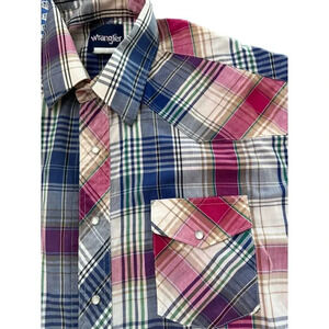 Wrangler Men's plaid short Sleeve snap Button Down Casual Shirts XL