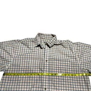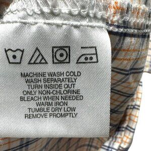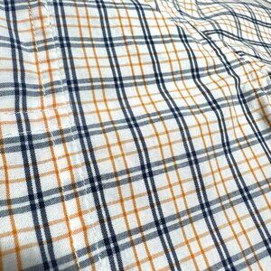 Great condition shirt from Wrangler. White with blue and orange plaid on soft and comfortable 100% cotton weave. Short sleeve, collared, and button front. Pockets on front chest. No rips, stains, or tears. No cosmetic damage.