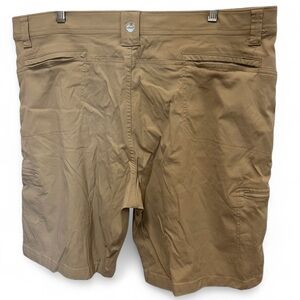 The perfect all around shorts. Neutral color and flat front. Tons of pockets, some secured with zipper. Comfortable stretch waist. An everyday go to.
