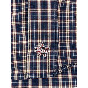 Wrangler PBR Men's Long Sleeve Rodeo Shirt Blue Red Cream Western No Size Tag