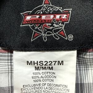 Wrangler PBR Mens M Pearl Snap Plaid Western Shirt Gray Red Embroidered Rodeo
