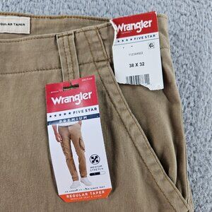 Wrangler Pants Mens 38x32 Khaki Regular Five Star Premium Cargo Taper Stretch
