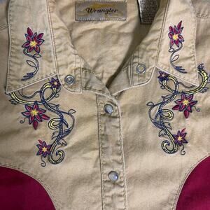 Wrangler Pearl Snap Button Up Womens Large Embroidered Western Rodeo Cowgirl