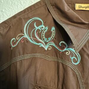 Elevate your wardrobe with this stylish Wrangler pearl snap shirt! This plus size 3XL shirt features intricate embroidery and classic pearl snap closures. Made from comfortable cotton, it's perfect for adding a touch of western flair to any outfit. Great for casual wear or dressing up for a special occasion. Don't miss out – grab this unique piece today and showcase your individual style!