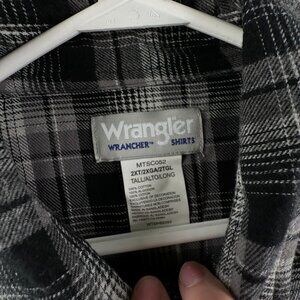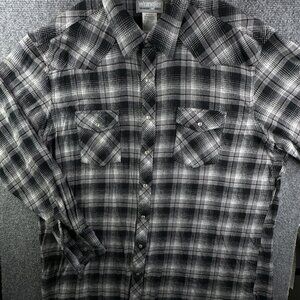 Wrangler Pearl Snap Flannel Shirt Long Sleeve Black Plaid 2XT Tall Cotton Adult
