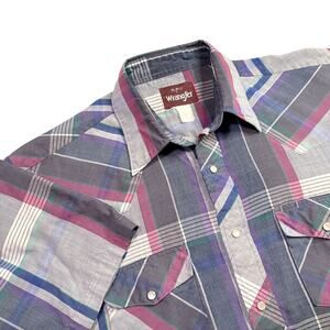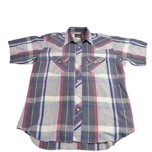 Wrangler Western Pearl Snap Lightweight Striped Short Sleeve Shirt Sz L 16-16 1/2