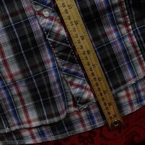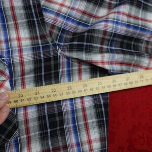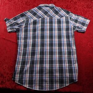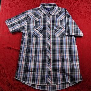 Wrangler Pearl Snap Shirt 2XT 2XL Tall Blk Blue Plaid Western Cowboy Short Slv