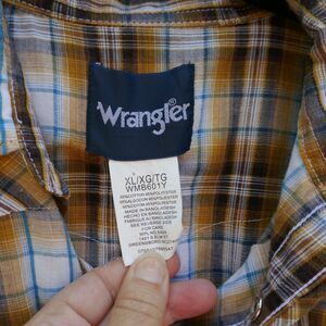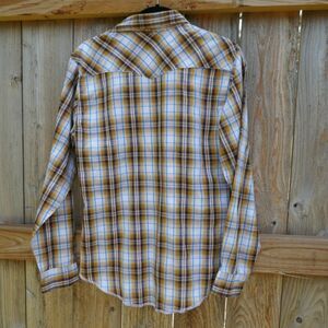 Wrangler Pearl Snap Shirt Long Sleeve Boys Brown Plaid XL Cotton Blend Flaw