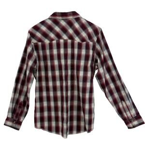 Wrangler Pearl Snap Shirt Maroon White Plaid Youth 18/20 Western Cowboy Rodeo