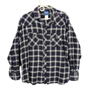 Wrangler Pearl Snap Shirt Mens Extra Large Flannel Blue Plaid Long Sleeve Rodeo