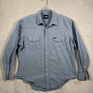 Wrangler Pearl Snap Shirt Mens XL Blue Chambray Light Denim Western Rodeo Cowboy