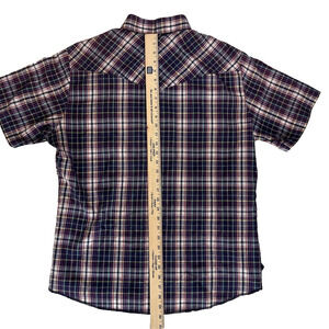 Wrangler western shirt men’s XL, plaid cowboy shirt, country fashion, rodeo wear, casual Americana, pearl snap button-up, rustic style, outdoor wardrobe, vintage western, classic menswear, rugged casual, layered outfit, frontier-inspired, durable fabric, timeless style, casual workwear, cowboy aesthetic, heritage fashion, authentic western, statement shirt