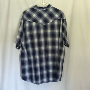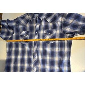 Wrangler Pearl Snap Shirt Mens XXL Blue Large Plaid Short Sleeve Western Ranch