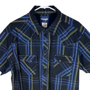 You are buying a Wrangler Pearl Snap Short Sleeve Shirt Men XL Brushpopper Western Cowboy Vintage