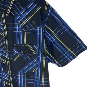 Wrangler Pearl Snap Short Sleeve Shirt Men XL Brushpopper Western Cowboy Vintage