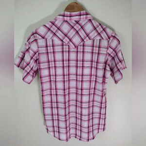 Wrangler Pearl Snap Short sleeve wrancher rancher collared pink plaid shirt