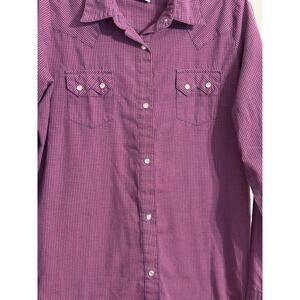 Wrangler Pearl Snap Western Shirt Purple Plaid Sz L Cowgirl Rodeo Boho
