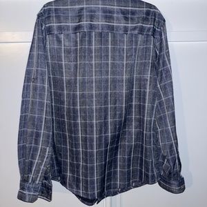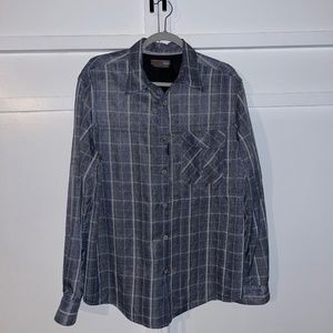 Men’s wrangler performance button down. EUC size L. Blue and charcoal plaid.
