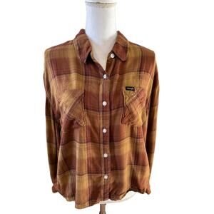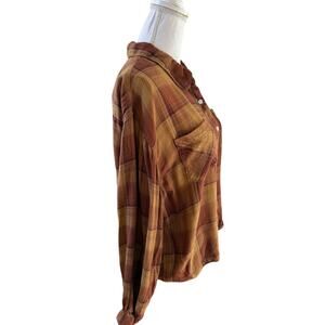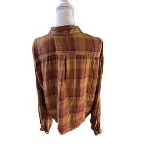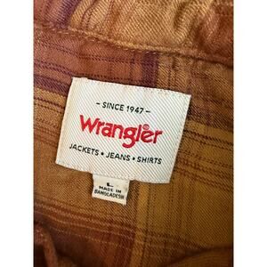 Wrangler Plaid Girlfriend Cropped Puff Sleeve Plaid Button Down Shirt in Cinnamon, size L. Good preowned condition, super soft 100% viscose. W Logo on pockets. Perfect paired with flared denim this fall.