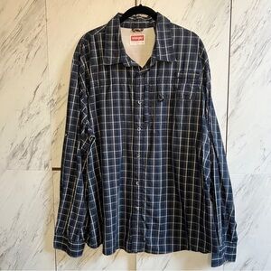 Wrangler Plaid Navy Button Down Workwear Shirt SZ 2XL