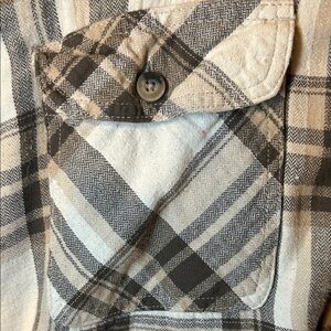 Classic Wrangler plaid jacket. Features button-up front. Long sleeves with buttoned cuffs. Two chest pockets with flaps. And heavy cotton inside