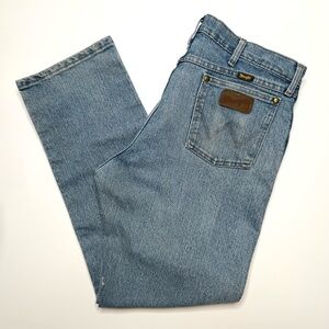 Wrangler Premium Performance Advanced Comfort Cowboy Cut Regular Fit Jeans. Size 36 x 32. Has some staining on front. See photos. But other than that they are in good condition.