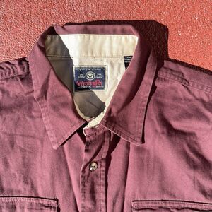 Wrangler Premium Quality Men's Authentic Shirt L Button Up Dark red Heavy Cotton