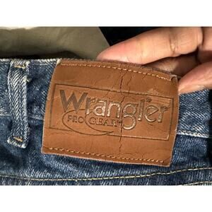 Experience the rugged outdoors with these Wrangler Pro Gear jeans for men. Made with a durable cotton blend material and featuring a brush guard outerwear and logo accents, these jeans are perfect for any outdoor activity. The zipper closure, relaxed fit, and straight style with stretch features provide comfort and flexibility while the medium fabric wash and solid blue color exude a timeless and classic look.