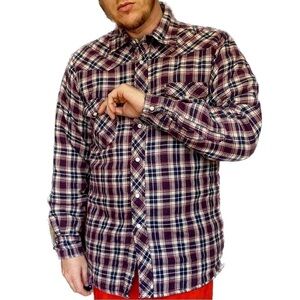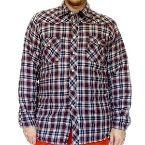 Wrangler - Quilted vintage pearl snap flannel shirt size medium
