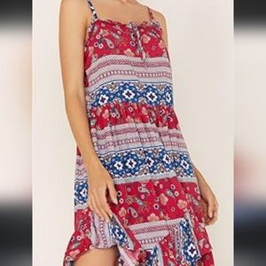 Wrangler RETRO dress strappy ruffle size XL Western pink blue paisley print