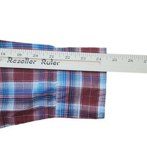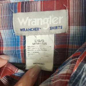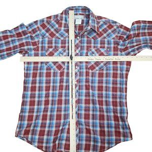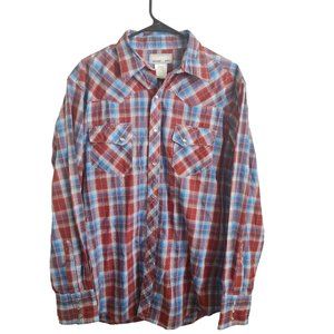 • Wrangler Rancher Mens Button Shirt Red Plaid Long Sleeve Pearl Snap Size Large