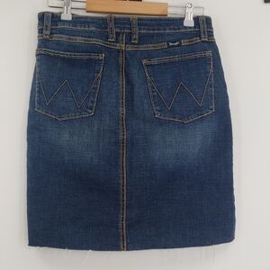 Wrangler Raw Hem Jean Skirt Great Condition Waist 15 inches Front Length 16.5 inches Back Length 19.5 inches re