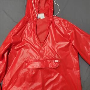 Wrangler Red Nylon Anorak Pullover L Vintage Windbreaker Hooded Drawstring