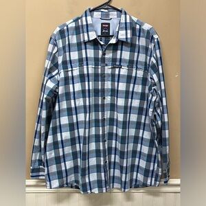 Wrangler Regular Fit Mens XL Blue Plaid Long Sleeve Button Up Shirt Outdoor