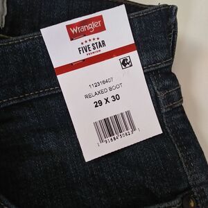 NWT Wrangler denim relaxed boot cut jeans dark wash mens size 29x30.