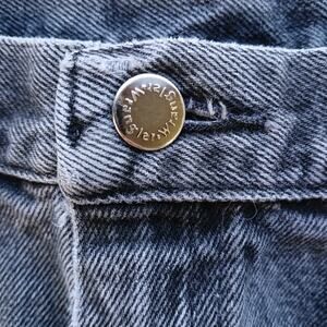 the previous owner cut these jeans so ridiculously short that i decided they would be better as a pair of shorts. i zigzagged about an inch from the cut edge to control future fraying.