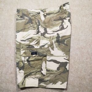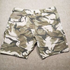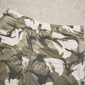 Experience the perfect blend of comfort and utility with Wrangler's Relaxed Fit Camo Cargo Shorts. They are pre-owned and in excellent condition! Tailored for those who appreciate a laid-back style, these shorts are designed with a flat front and feature a versatile camouflage pattern suitable for any casual occasion.
