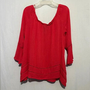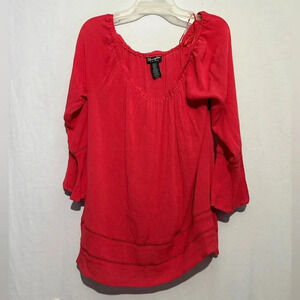 Wrangler Retro Bell Sleeve Blouse Scoop Neck Western Large